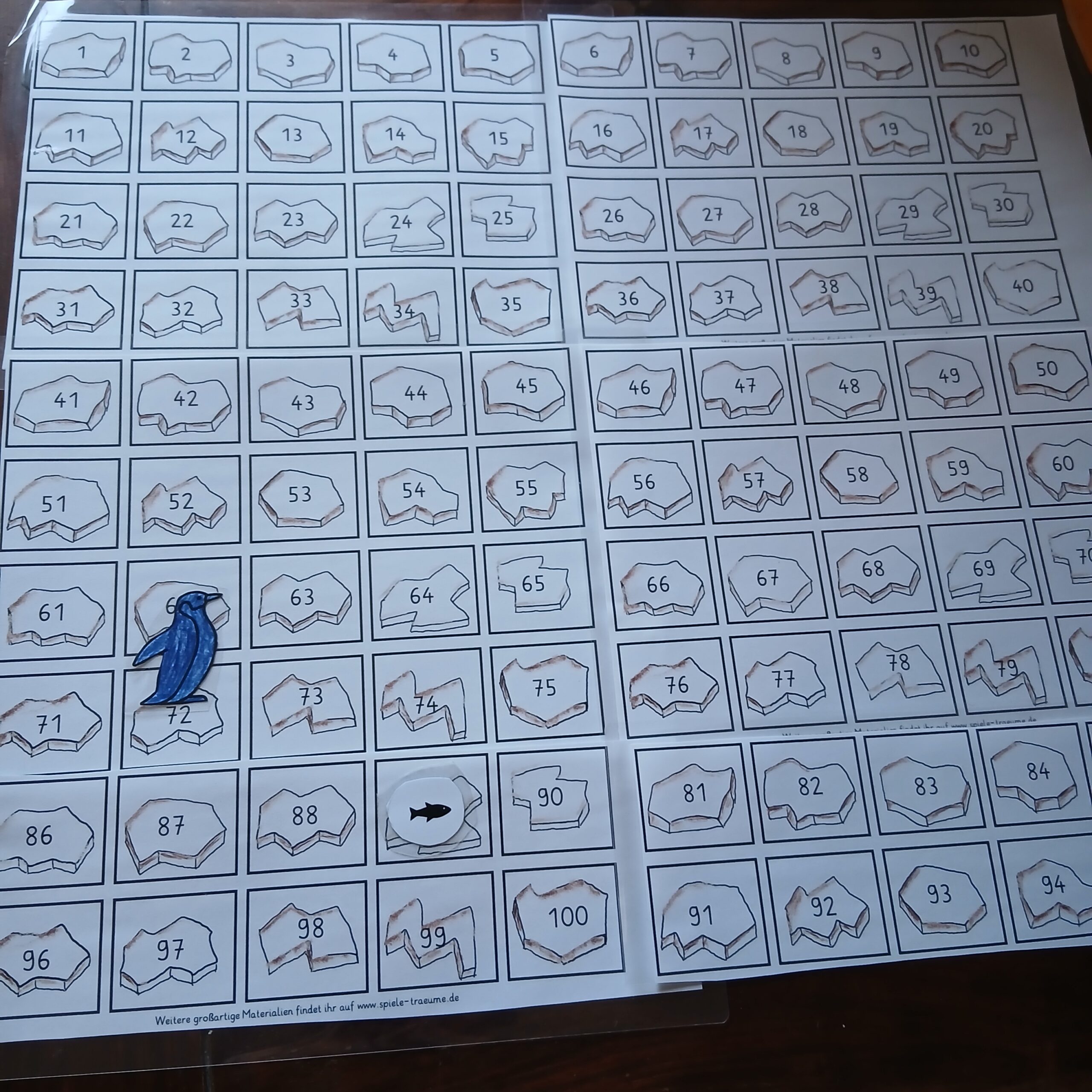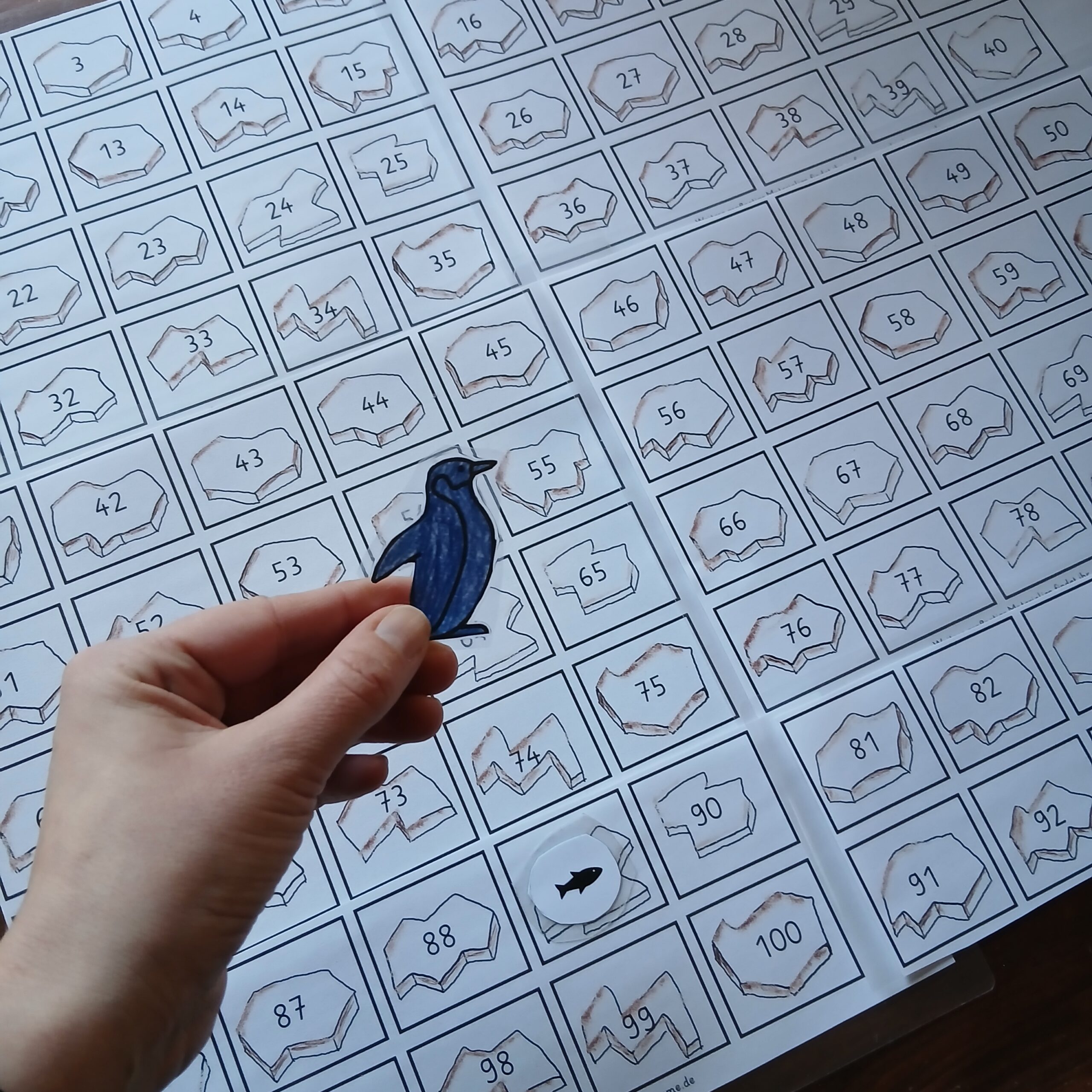 Mit dieser liebevoll gestalteten Vorlage bastelt ihr ganz einfach euer eigenes Hunderter-Eisschollenfeld und macht das Lernen der Zahlen zu einem echten Spielerlebnis.
